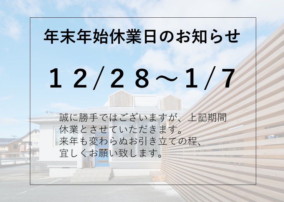 年末年始休業期間中は何かとご迷惑をおかけいたしますが、何卒ご了承のほど、お願い申し上げます。