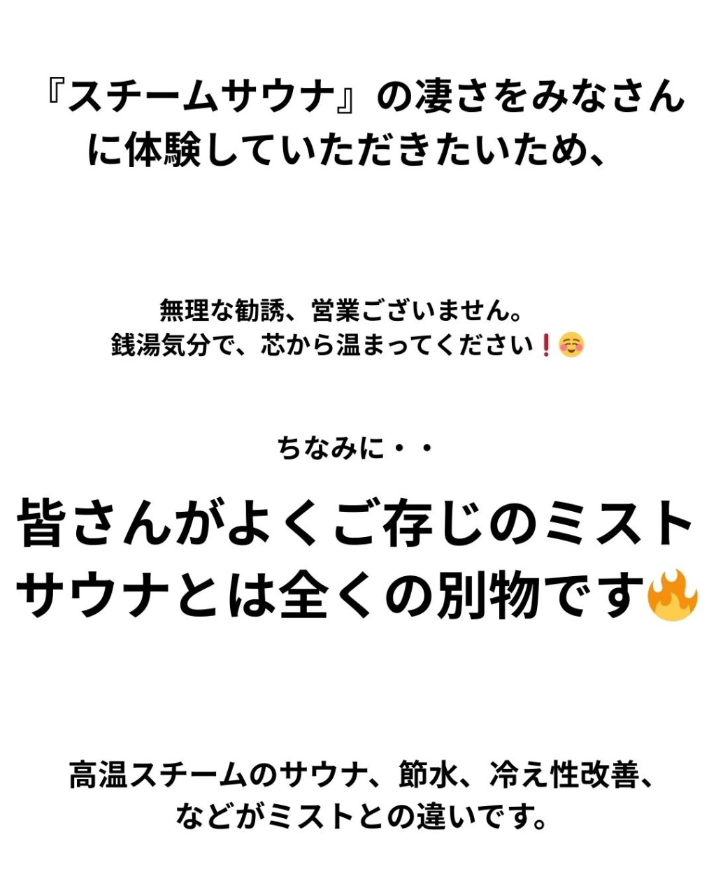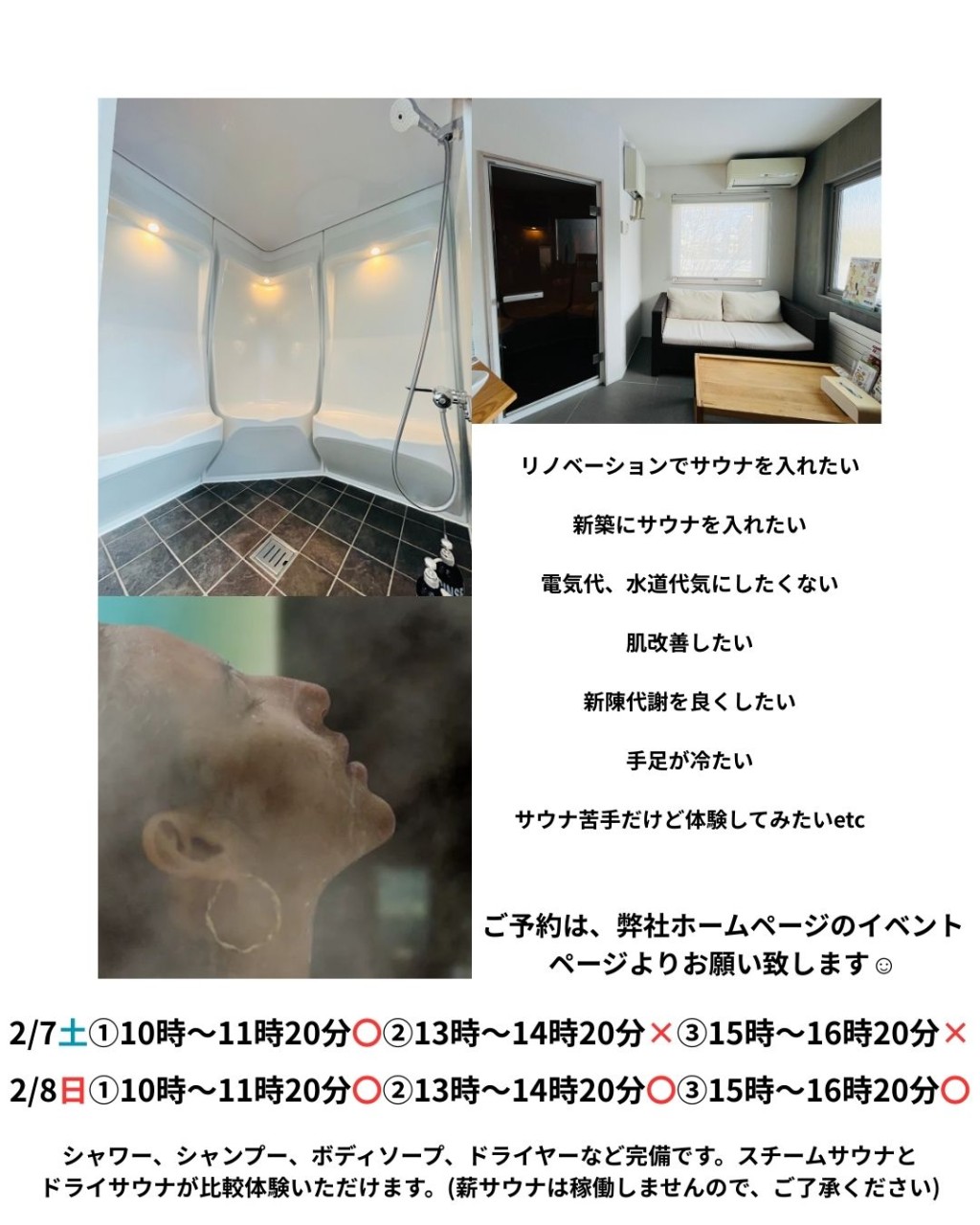今回のスチームサウナ体験イベントは、これからサウナ設置の検討や住宅への導入などを計画しているお客様に向けてのイベントになります。スチームサウナの良さを知って欲しい♩
