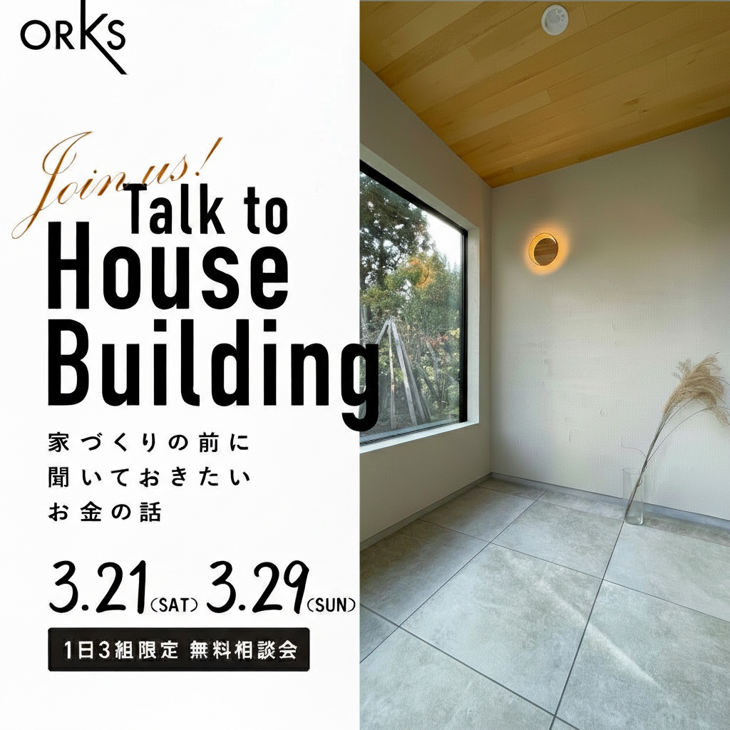 山形で高性能なデザイン住宅を手がける建築工房ORKSが、家づくりに欠かせない「資金計画」をテーマにした無料相談会を開催します。