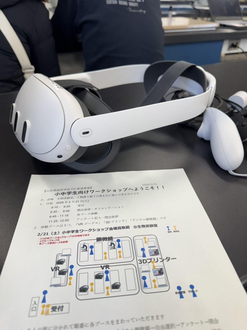 ワークショップでは、VRゴーグル・3Dプリンタ・顕微鏡・AIを使った絵や写真の作成の