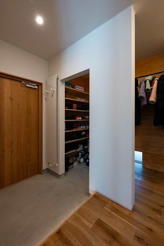 性能面ではUA値0.34という北海道基準並みの高断熱性能を実現。断熱等級6やHEMSの導入を要件とするGX志向型住宅の認定を取得しており、補助金も活用しています。家全体を優しく包み込む温熱環境により、ご家族の時間を心地よく豊かに育む住まいとなりました。